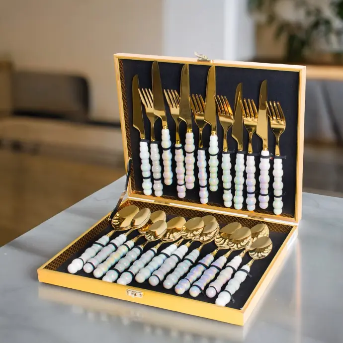 Produits recommandés : Coffret Ménagère Prestige 24 Pièces et Boîte de Rangement Doré