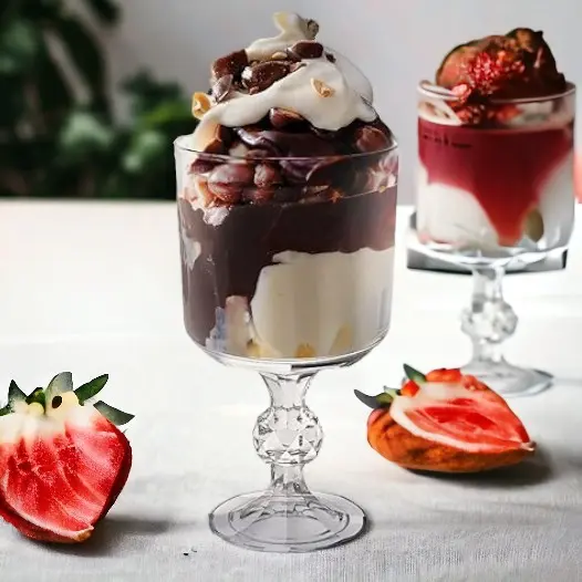 Les coupes à glace Lux Diamond peuvent être utilisées pour servir des desserts élégants.
