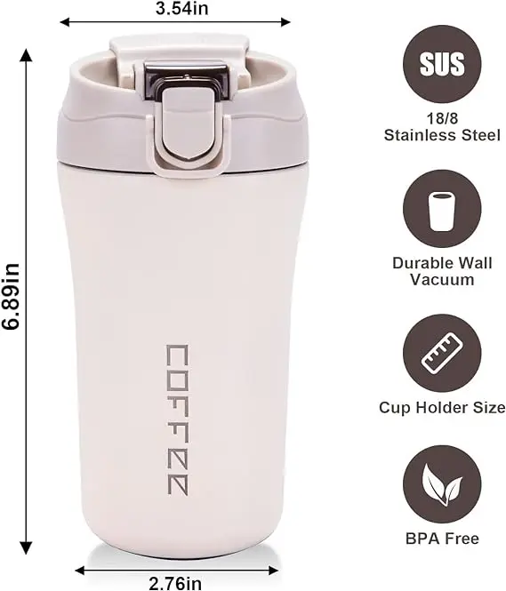 🔒 Sécurité Anti-Fuite pour une Tranquillité d'Esprit Avec son verrouillage vertical du couvercle, notre mug garantit qu'aucune goutte ne sera gaspillée en chemin. Fini les accidents de renversement ! Vous pouvez manœuvrer le thermos d'une seule main en toute confiance, que vous soyez en voiture, en train ou en marchant dans la rue.