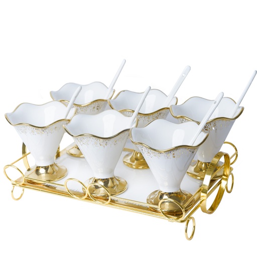 Service à Dessert 14 pièces Avec Plateau Doré