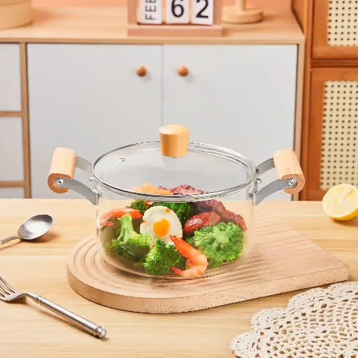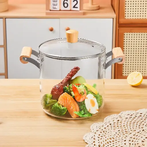 Marmite En Verre Chauffante avec poignée en Bois 5,5L