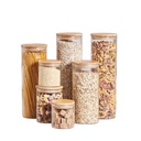 Lot de 3 Boite En verre avec Couvercle en Bois Bambou