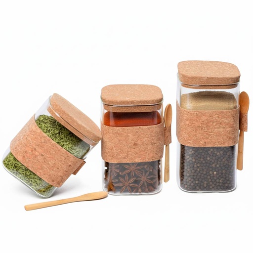 Lot de 3 Boite En verre avec Couvercle en Bois Bambou