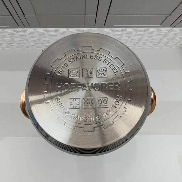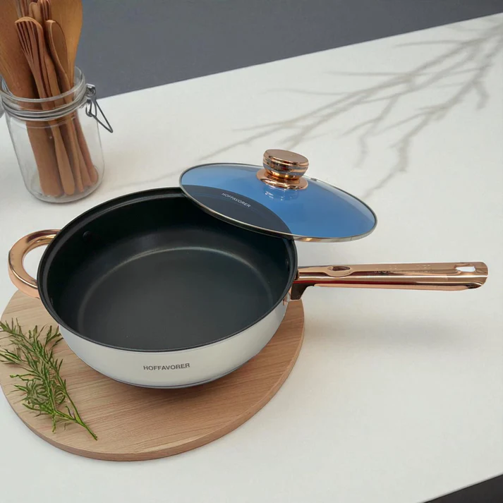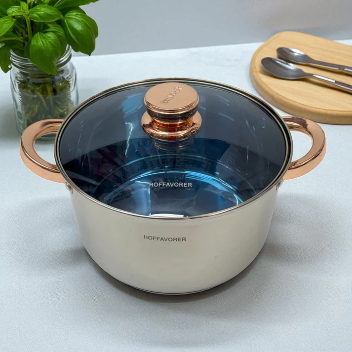 Ne cachez plus vos casseroles ! Le design HOFFAVORER est si élégant que vous serez fier de le laisser visible dans votre cuisine ou même de l'utiliser pour le service à table. Les poignées ergonomiques en finition or rose offrent non seulement un look somptueux, mais aussi une prise en main confortable et sécurisée.
