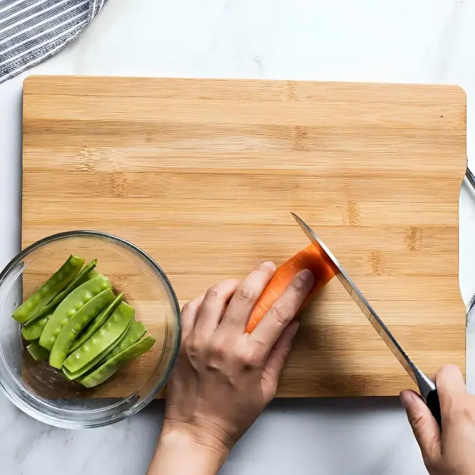💚 Le Bambou : Un Choix Écologique et Sain 💚 Non seulement notre planche est esthétique, mais elle est aussi un choix respectueux de l'environnement. Le bambou est naturellement résistant aux bactéries et doux pour vos couteaux.