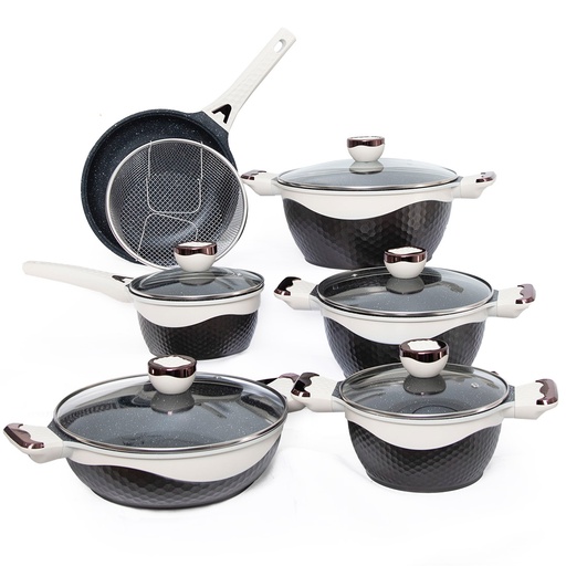 Batterie De Cuisine Sizar 21 Pièces Granite -Noir