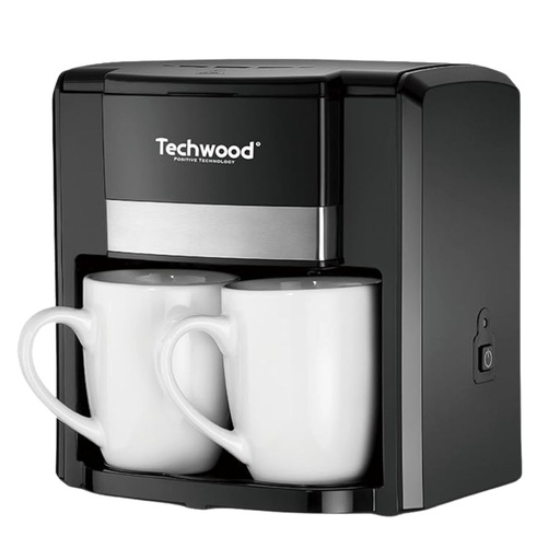 Cafetière Techwood Noir 2 Tasses Céramique, Filtre Permanent, Réservoir 0,6L, Arrêt Automatique – TCA-206